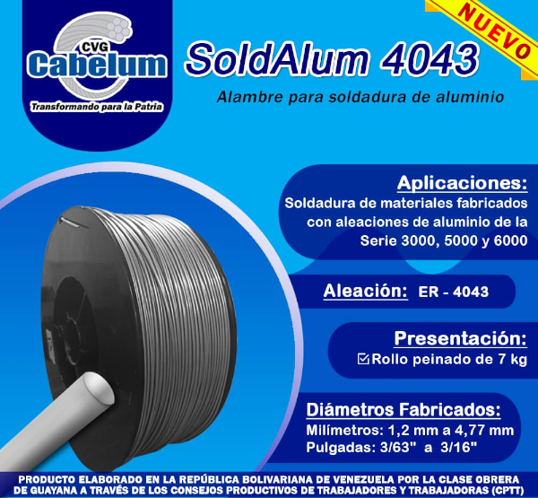 SoldAlum 4043 nuevo producto de CVG CABELUM al alcance de la industria nacional